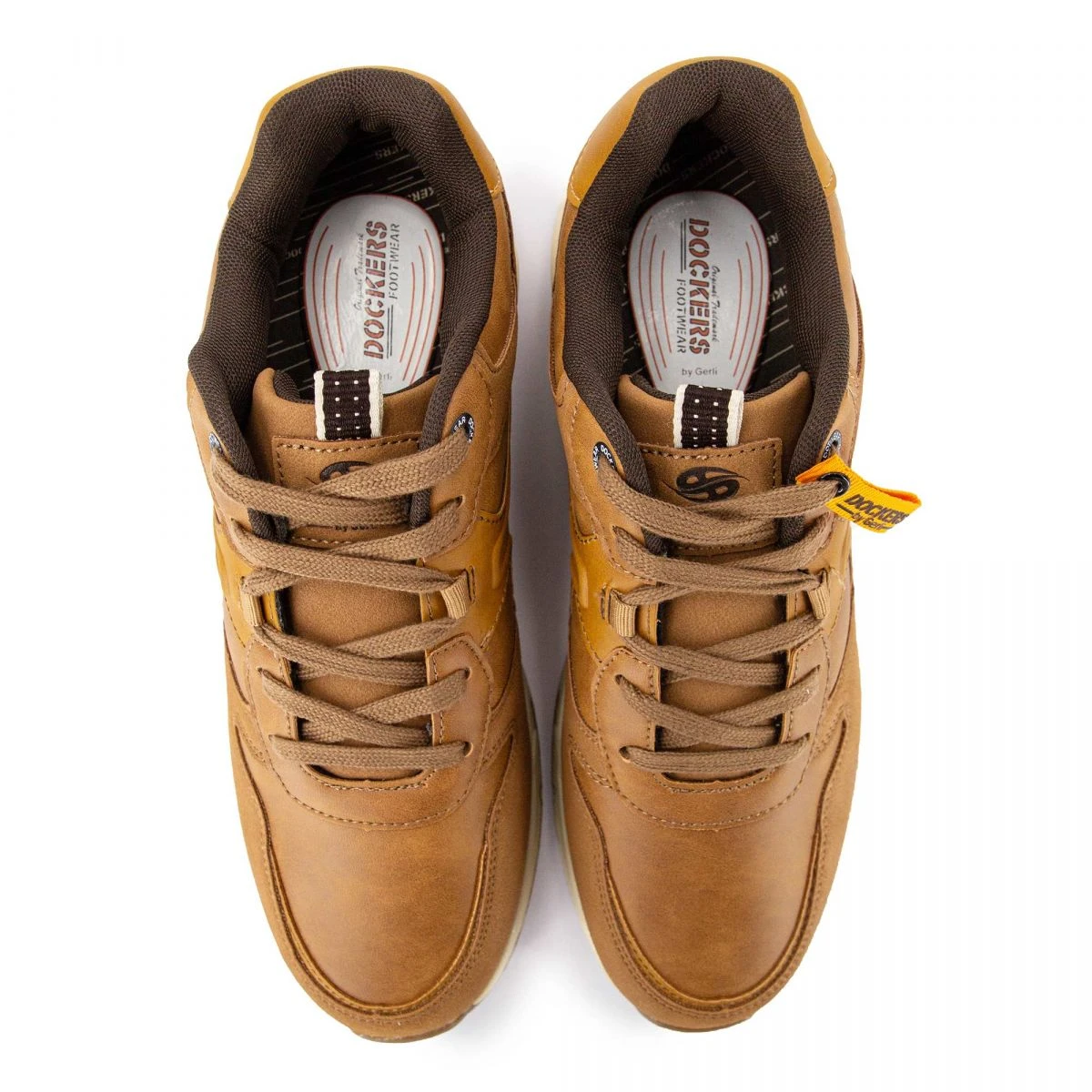 Dégriffstock vous propose cette paire de Baskets avec semelle amovible streetwear effet cuir à lacets pour homme de la marque DOCKERS BY GERLI à prix dégriffé.