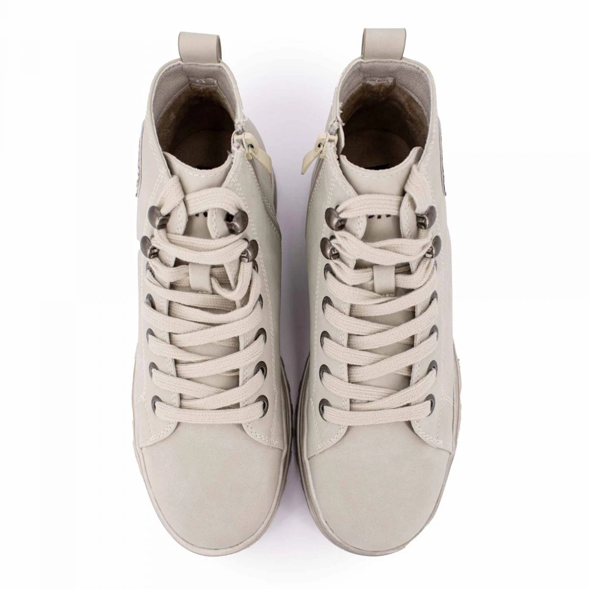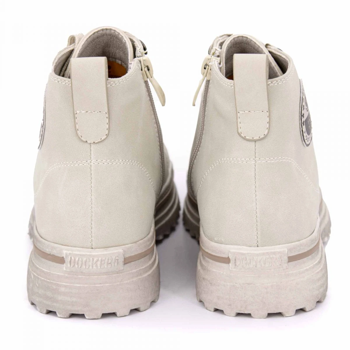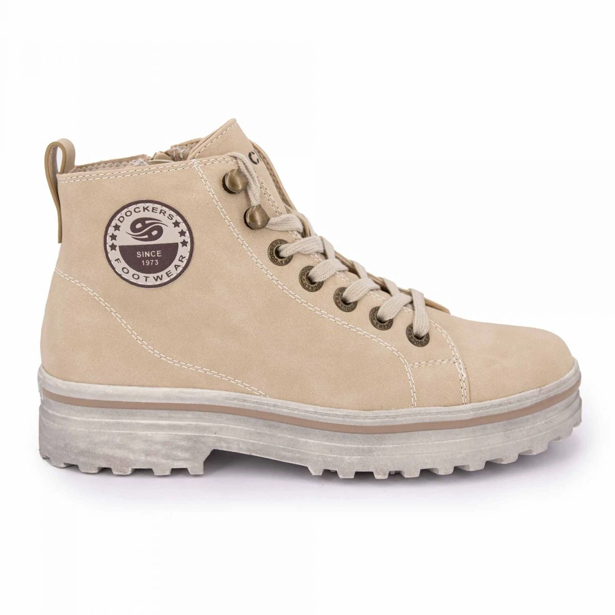 Dégriffstock vous propose cette paire de baskets montantes suédé zippées à lacets semelles crantées épaisses pour femme de la marque DOCKERS BY GERLI à prix dégriffé.