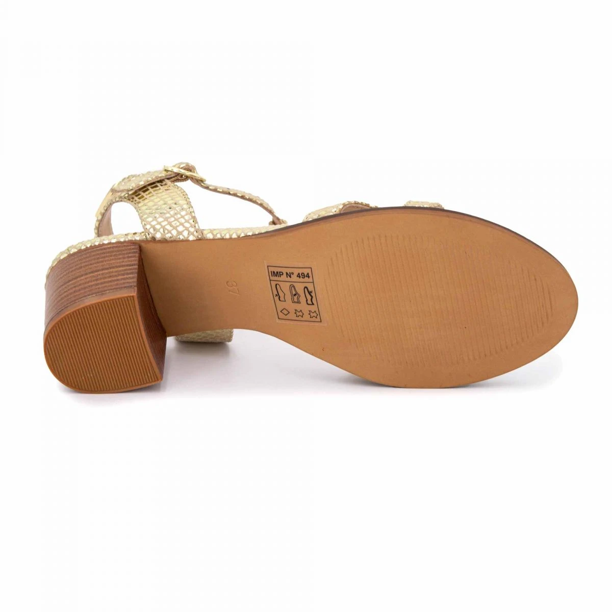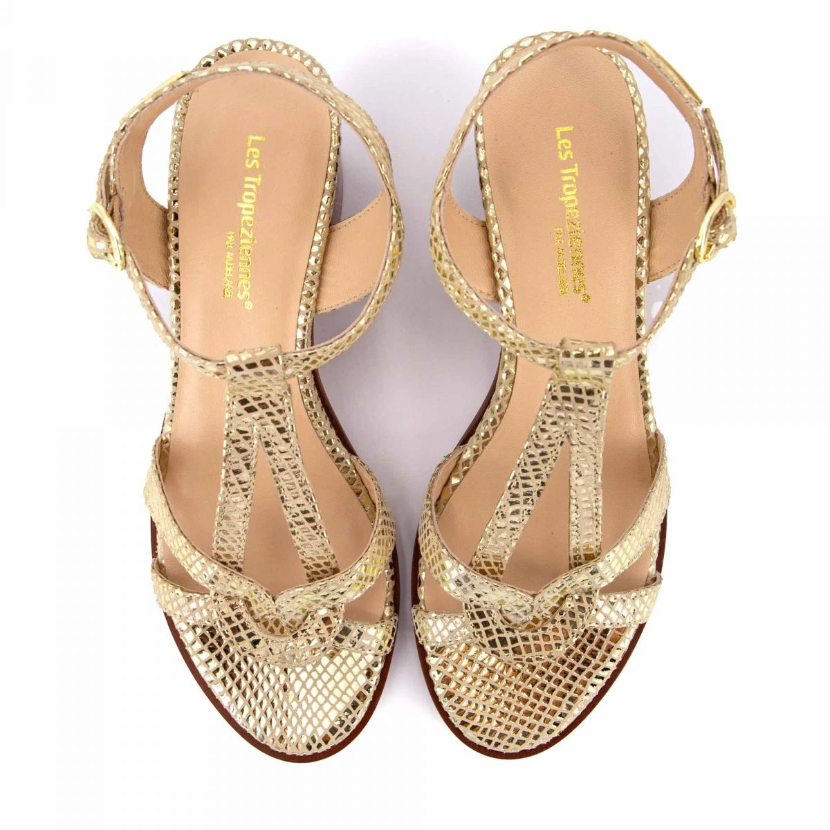 Dégriffstock vous propose cette paire de Sandales à talons or imprimé serpent Lila Femme de la marque LES TROPEZIENNES PAR M.BELARBI à prix dégriffé.