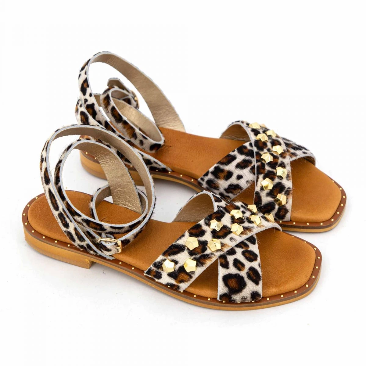 Dégriffstock vous propose cette paire de sandales cuir imprimé léopard clouté Giada pour femme de la marque SEMERDJIAN à prix dégriffé.